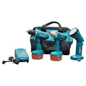 - Includes: MAK6934FDZ 1/2" Impact Wrench, MAK6280DZ 3/8" Driver Drill, MAKML140 Flashlight, 2 NiCd Batteries, 1 hour charger and custom tote bag